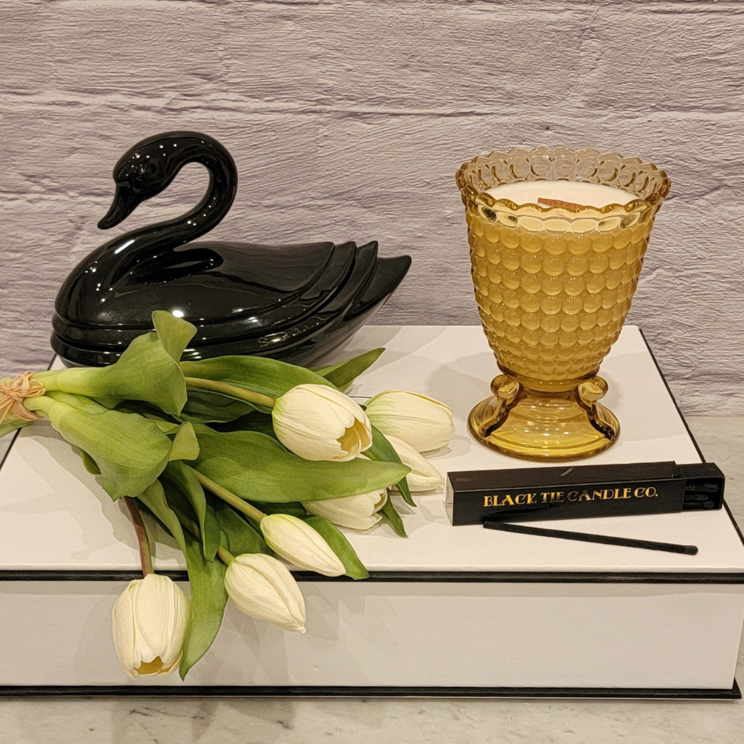 Perfect for creating a warm, luxurious ambiance, Alexandra embodies classic grace and understated beauty. Just like the day's golden hour, she's the perfect end to a perfect day. Light her in the evening, and let her soft glow transform your space into a serene retreat.